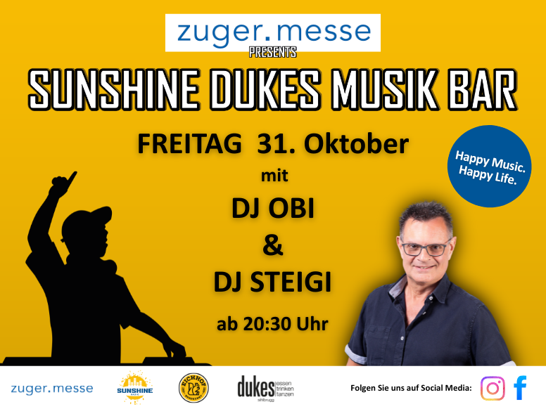 Home Events DJ OBI & DJ STEIGI an der Zuger Messe SUNSHINE DJ OBI & DJ STEIGI an der Zuger Messe SUNSHINE + Zu Google Kalender hinzufügen + iCal / Outlook export Datum 31. Okt.. 2025 Uhrzeit 20:30 - 02:00 Kategorie Outdoor