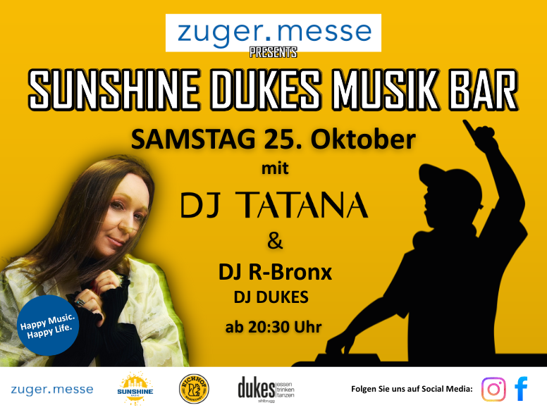 Home Events DJ TATANA & DJ R-BRONX an der Zuger Messe SUNSHINE DJ TATANA & DJ R-BRONX an der Zuger Messe SUNSHINE + Zu Google Kalender hinzufügen + iCal / Outlook export Datum 25. Okt.. 2025 Uhrzeit 20:30 - 02:00 Kategorie Outdoor