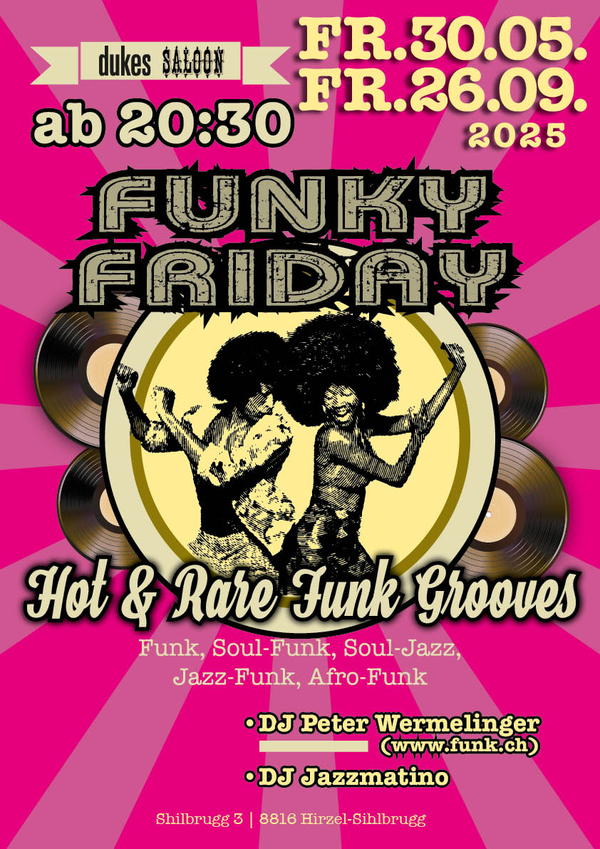 Home Events FUNKY FRIDAY FUNKY FRIDAY + Zu Google Kalender hinzufügen + iCal / Outlook export Datum 26. Sep.. 2025 Vorbei! Uhrzeit 20:30 - 01:00 Kategorie Saloon