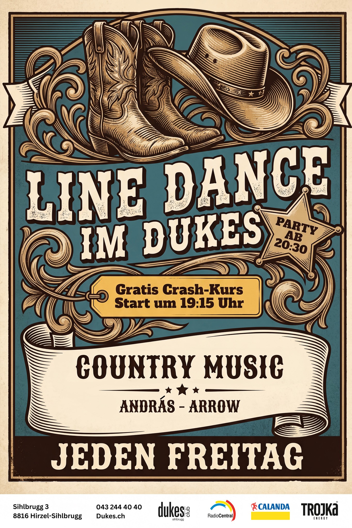 Home Events LINE DANCE IM DUKES mit DJ Andras LINE DANCE IM DUKES mit DJ Andras + Zu Google Kalender hinzufügen + iCal / Outlook export Datum 03. Apr.. 2026 Uhrzeit 19:15 - 01:00 Kategorie Sihl 3 / Club