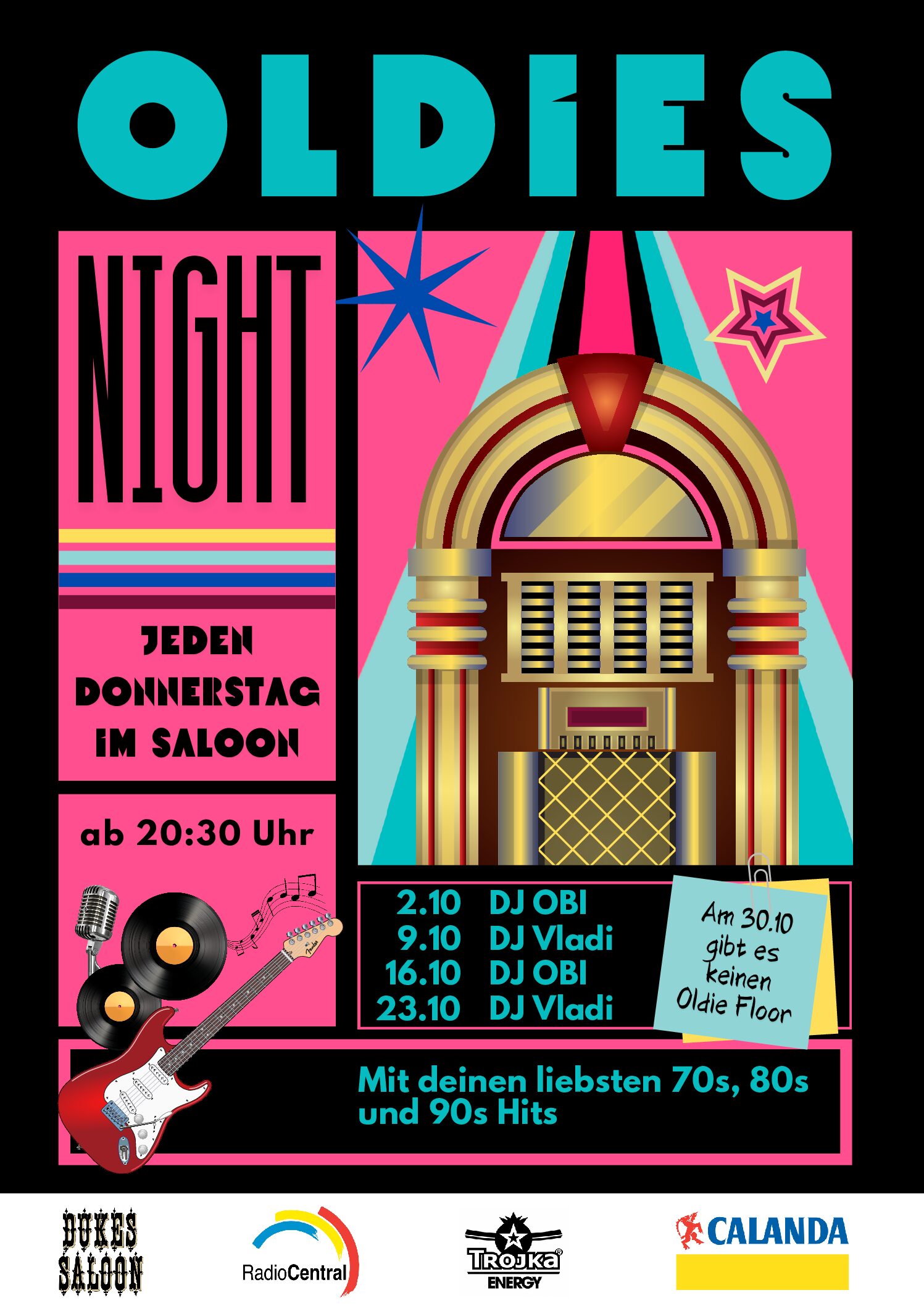 Home Events OLDIES NIGHT mit DJ Vladi OLDIES NIGHT mit DJ Vladi + Zu Google Kalender hinzufügen + iCal / Outlook export Datum 23. Okt.. 2025 Uhrzeit 20:30 - 23:55 Kategorie Saloon