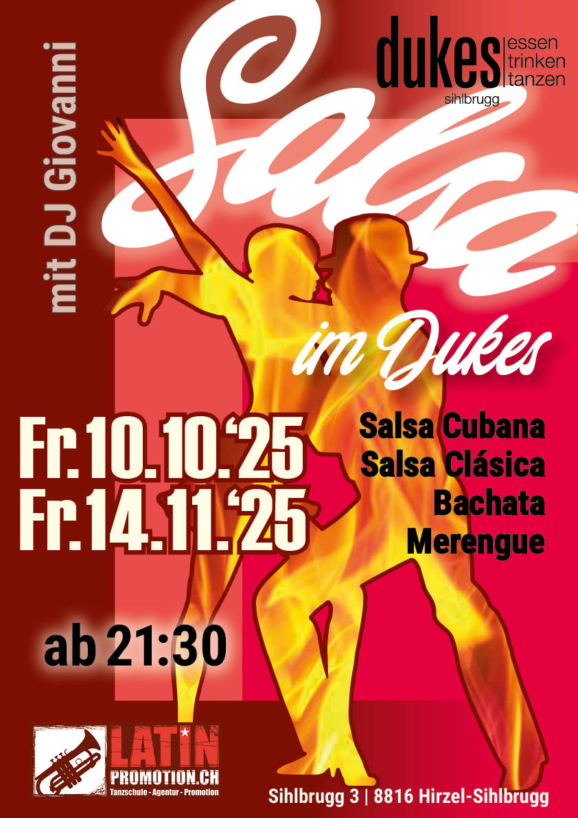Home Events SALSA im Dukes mit Dukes mit DJ Giovanni SALSA im Dukes mit Dukes mit DJ Giovanni + Zu Google Kalender hinzufügen + iCal / Outlook export Datum 10. Okt.. 2025 Uhrzeit 21:30 - 02:00 Kategorie Eventsaal